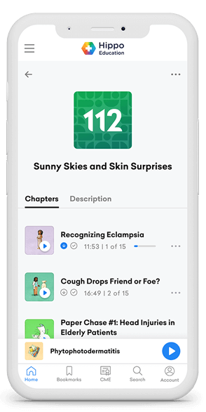 Then, let the episode play and earn while you learn! You’ll accrue CME simply by listening - no quizzes or hoops to jump through. You’ll earn 0.25 credits for every 15 minutes listened. (You can see your running total of CME accrued by navigating to the CME tab of the app or web browser.)